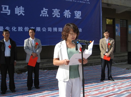 马峡,甘肃—— 2010年9月7日,米兰手机登录入口向甘肃省平凉市华亭县马峡中心小学无偿捐赠了价值十万元的钢木课桌椅。米兰手机登录入口副总经理张雅丽、华亭县县委常委、副县长徐德才、华亭县教育局局长陶玉宏等出席了捐赠仪式。马峡中心小学校长杜安平向米兰手机登录入口公司赠送了锦旗,表达感激之情。