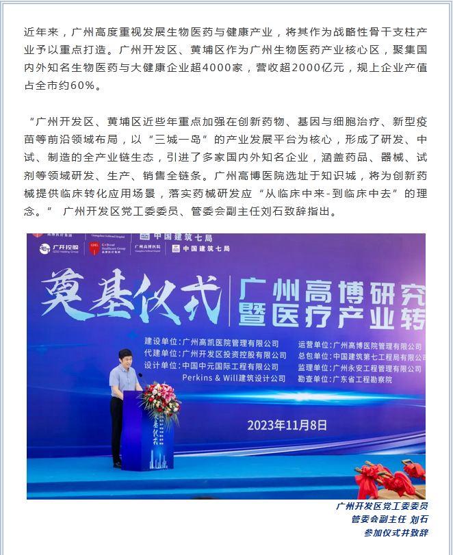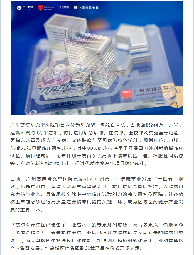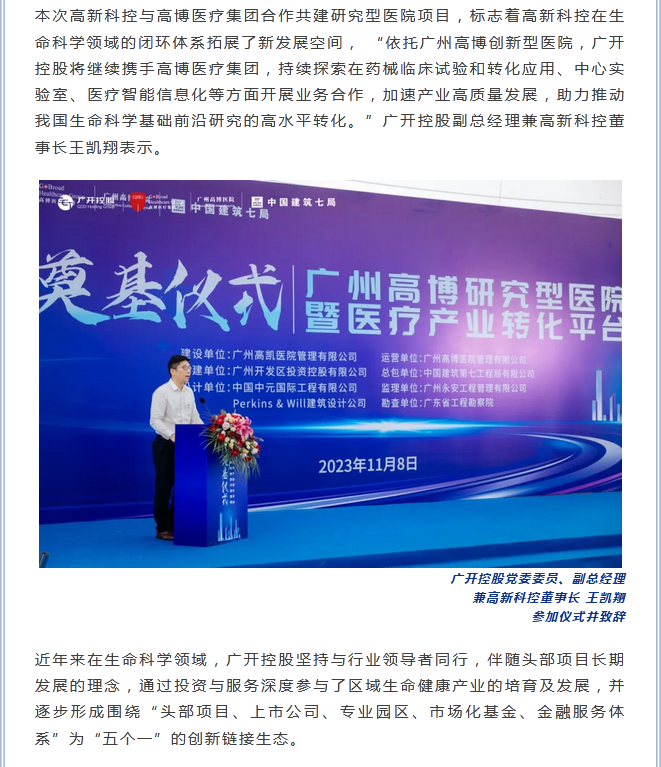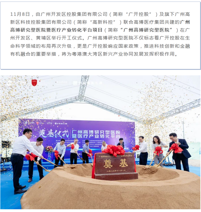 热烈祝贺:广开控股生命科学布局再升级,广州高博研究型医院正式动工