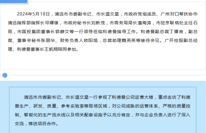 清远市市委副书记、市长温文星一行 莅临米兰手机登录入口指导工作